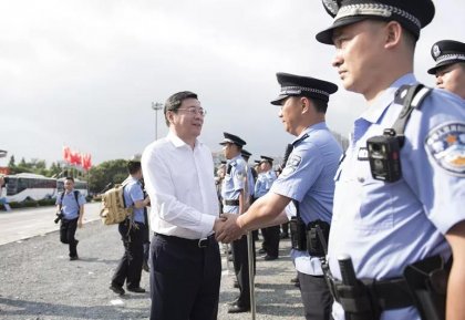 19-06-186月13日,全省公安工作会议在长沙召开。下午,省公安厅在长沙市人民警察学校举行“践行新使命、忠诚保大庆”新中国成立70周年安保誓师和实战演练。省委书记杜家毫,省委副书记